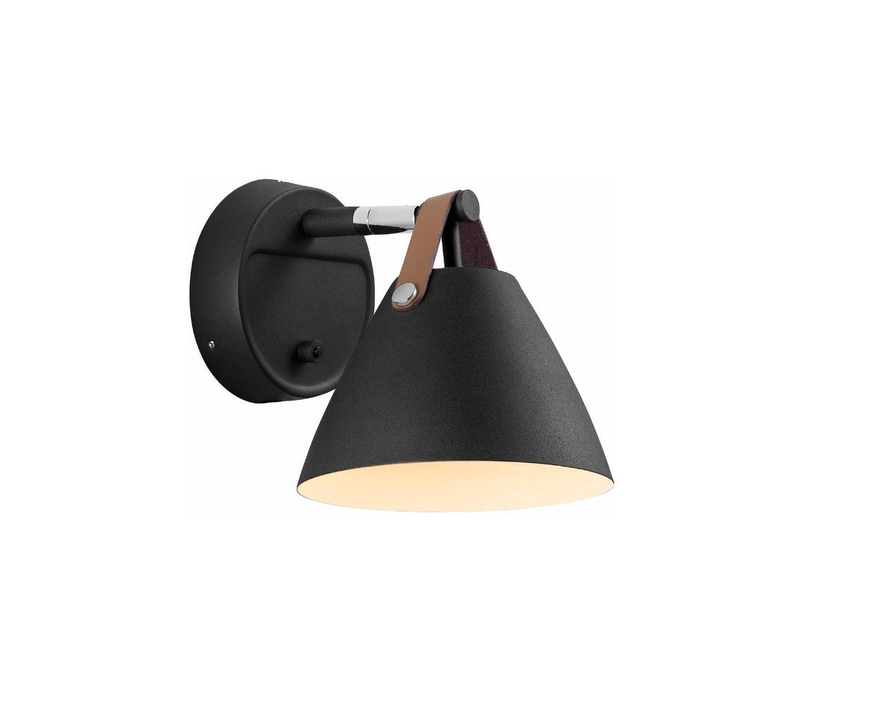 Design For The People Strap 15 Væglampe H: 17 cm - Sort/Brun Læder