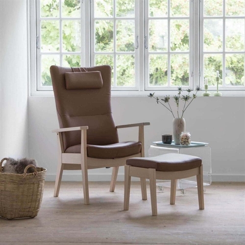 Farstrup Edge 7910 lænestol inkl. skammel - Savanne læder/Bøg