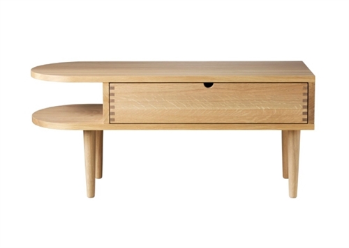 Smukt lille møbel til entré eller stue fra FDB. F24 bænken er lavet af lakeret FSC certificeret egetræ og tanken bag serien er, at møblet kan ændre funktion efter behov og følge dig i mange år. Brug møblet som bænk, sofabord, tv-bord eller entrémøbel.