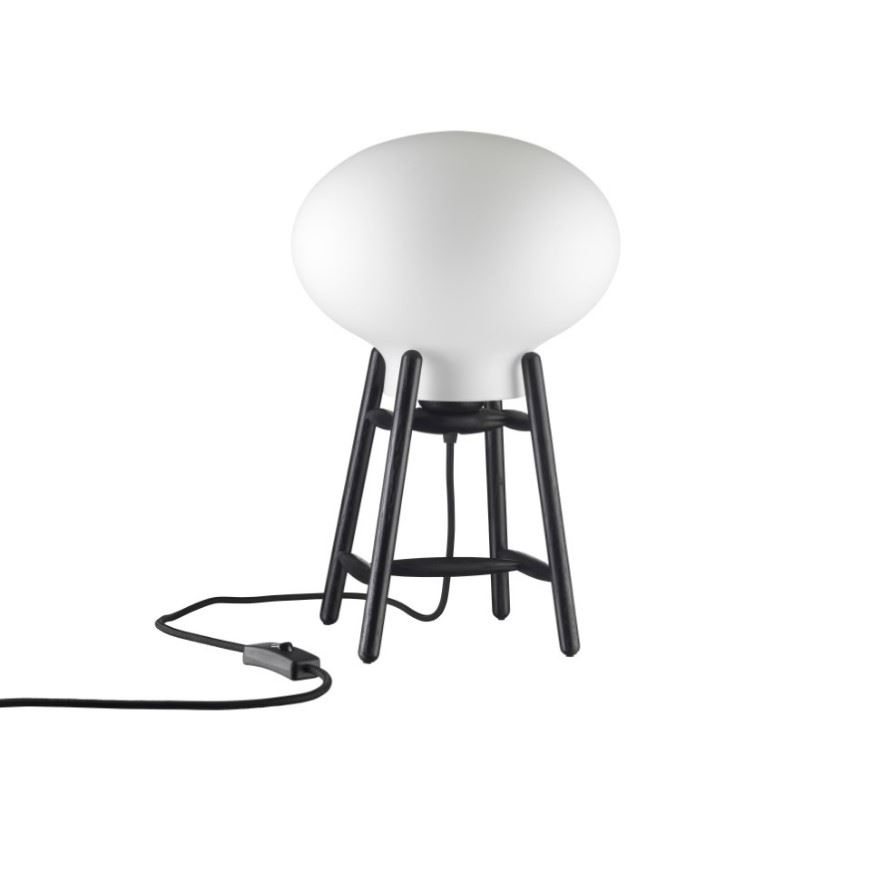 FDB Møbler U4 Hiti Bordlampe m. Sort Ledning H: 22,8 cm - Sortmalet Eg/Opal Glas