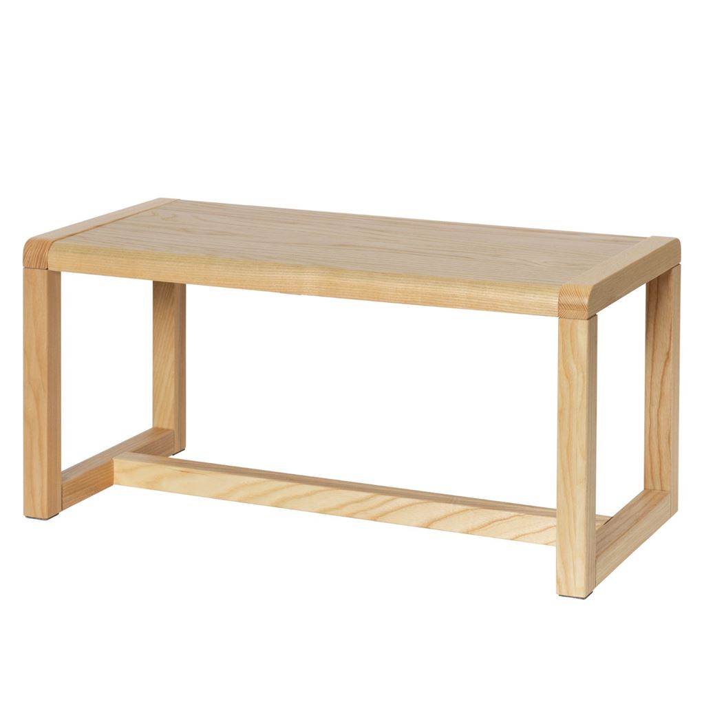 Little Architect bænken fra Ferm Living passer sammen med Little Architect bordene, og kan bruges til at skabe et sted med plads til leg og kreativitet til den lille. Little Architect kollektionen består af en række enkelte møbler med moderne udseende som inviterer til kreativitet og leg. Bordet er fremstillet af massivt asketræ og askefiner med MDF kerne.