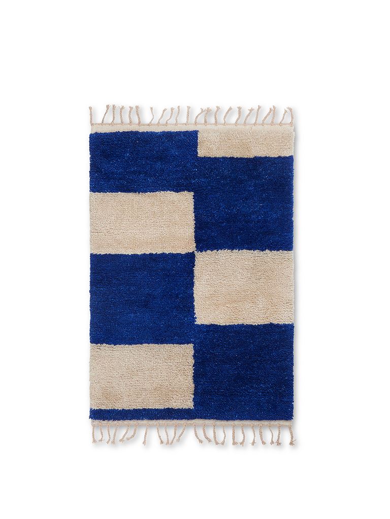 Ferm Living Mara Knotted Rug S 80x120 cm - Bright Blue/Off-White