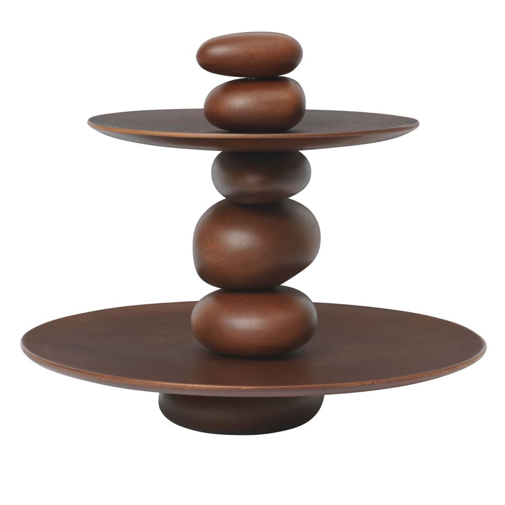 Pebble Dessertopsats er inspireret af den organiske skønhed i stablede småsten, som man ofte finder langs kystlinjen. Den er lavet af FSC®-certificeret bøgetræ med en glat, poleret finish, der fremhæver træets naturlige åremønster og robuste kvalitet. Med sine to lag er opsatsen ideel til servering af desserter, kager eller fingermad. Det lagdelte design tilføjer højde og visuel interesse til borddækningen, samtidig med at det optimerer pladsen, hvilket gør den både praktisk og stilfuld.