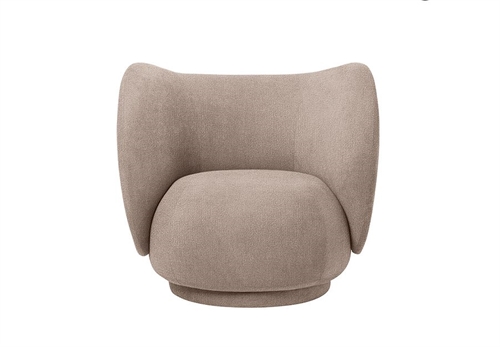 Rico-serien fra Ferm Living har et klassisk design, men med et twist af bløde linjer og volumen, der giver et indbydende udtryk. Loungestolen har en tidløs polstring af Grain tekstil som består af genanvendt boucléstof. Grain, ligesom bouclé er et lækkert ujævnt garn med en rig overfladestruktur. I Rico-serien finder man møbler med bølgende struktur, der giver ethvert rum en moderne forening af komfort og elegance.