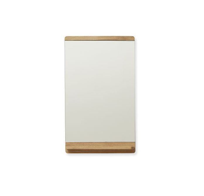 Det flotte vægspejl er både funktionelt og elegant i sit udtryk en med lille hylde foran samt dets rene linjer. Det vil passe smukt ind i mange moderne hjem til at hænge i badeværelse, entré eller soveværelse. Derudover har hylden også en lille fordybning, hvor du kan stille og opbevare smykker og andre småting.