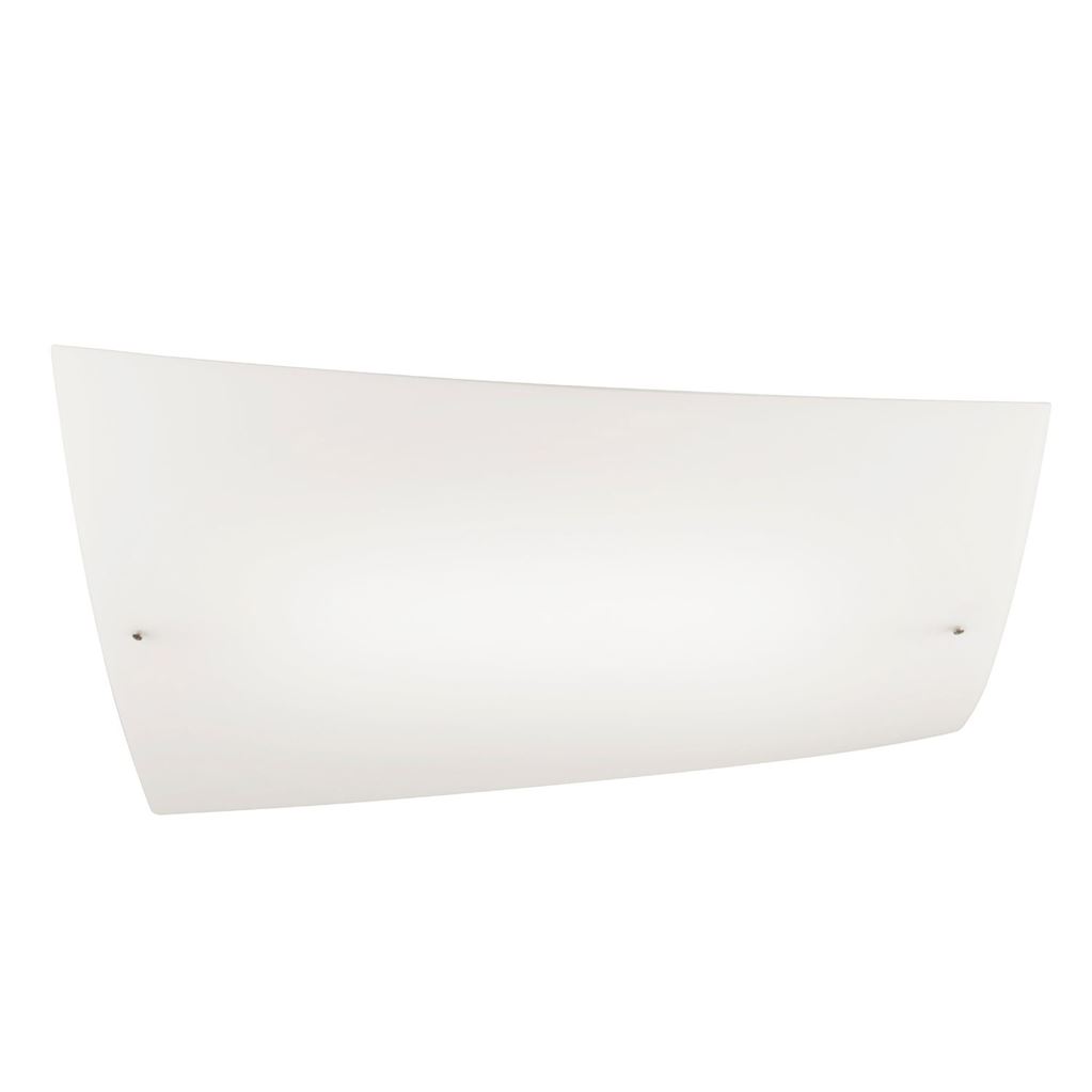 Elegant loftlampe med et minimalistisk design, fremstillet af syreætset glas og lakeret metal. Lampen måler 48,5 cm i bredden, 37,5 cm i højden og har en dybde på 10 cm. Perfekt til at skabe en blød og behagelig belysning i ethvert rum.