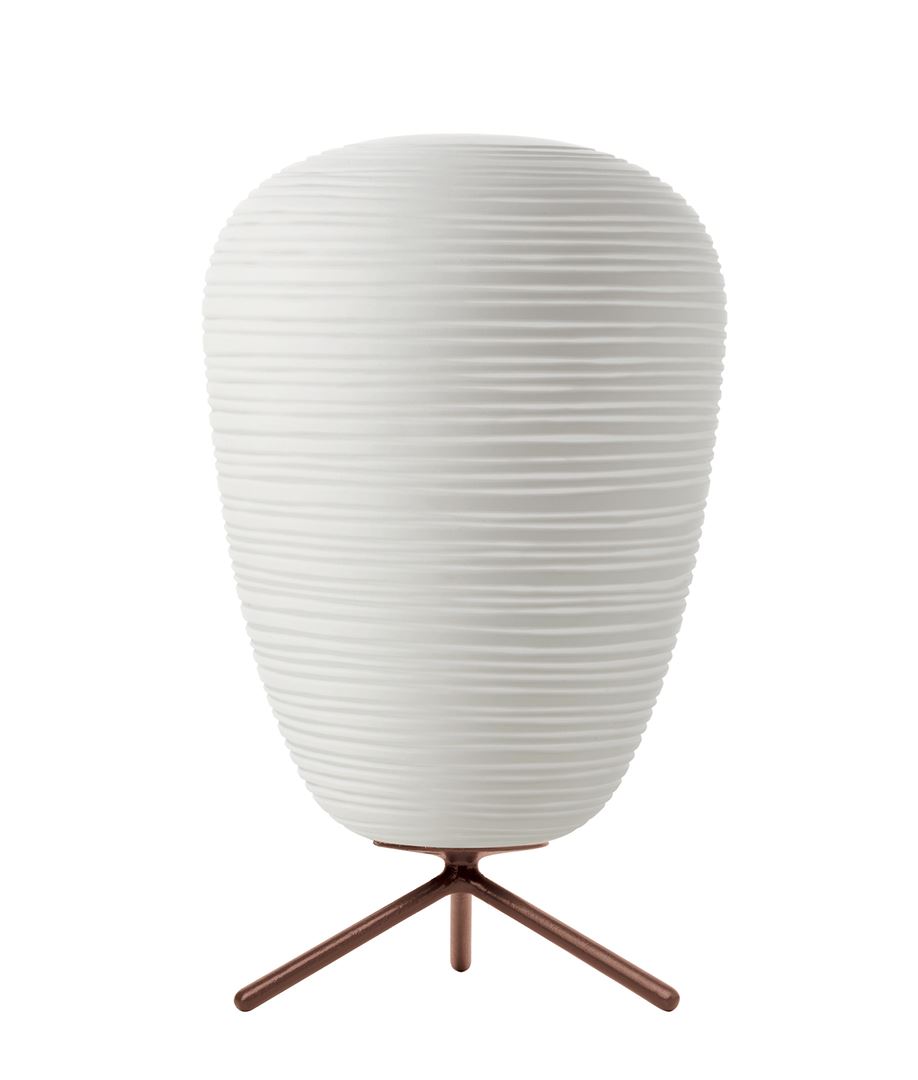 Rituals serien fra Foscarini er designet af Ludovica + Roberto Palomba. Seriens sprog er skønhed og poesi. Bordlampen er lavet i sandblæst glas og er præget af tynde graveringer, der minder om det organiske Washi-look, og foden består af pulverlakeret metal. Lampens design er unik, luksuriøst og afslappet på samme tid. De tynde graveringer skaber et varmt og stemningsfuldt lys, og skyggen som kastes kunne minde om de traditionelle orientalske lamper. Lampen har en 200 cm lang ledning med afbryder, og er dæmpbar. Rituals 1 bordlampen har en E27 sokkel, pære medfølger ikke.