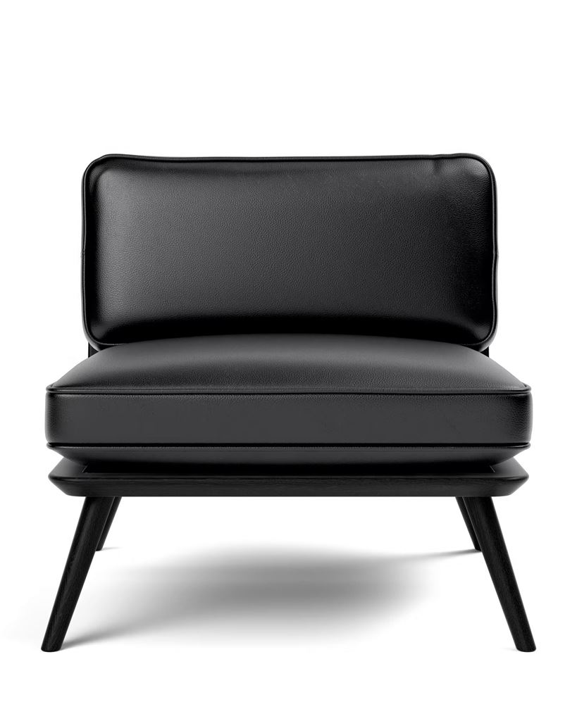 Spine loungestolen fra Fredericia Furniture er designet af Space Copenhagen tilbage i 2016. Stolen har et udformet tilbagelænet formsprog, med åbne sider og uden armlæn og stolens ben er lavet i massivt asketræ. Loungestolen er oprindeligt designet til loungeområder i blandt andet gourmetrestauranter, hvor der bliver lagt vægt på, at møblerne matcher den kulinariske og/eller kvalitetsoplevelse. Stolens puder er fastgjort med velcro og kan afmonteres i forbindelse med rengøringen.