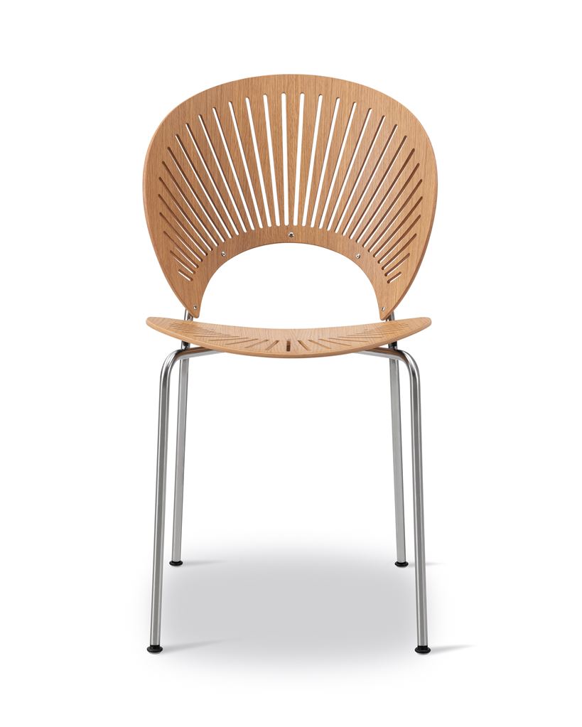 Skøn og ikonisk stol fra Fredericia Furniture, designet af Nanna Ditzel. Trinidad stolen er unik i sit udtryk og har en skulpturel iøjnefaldende skulpturel karakter. Den gennembrudte finér gør, at Trinidad stolen nærmest opløses i et spil af lys og skygge. Stolens enkelthed udstråler designeren Nanna Ditzels tilgang til design - et let møbel med en vis grad af gennemsigtighed, som samtidig er et møbel der vækker opmærksomhed og som ikke mindst fremstår som et dekorativt element. Trinidad stolen blev lanceret i år 1993 og kunne grundet en helt ny CNC-fræserteknologi blive et designgennembrud - et helt unikt design, som i dag har opnået status som en moderne klassiker.