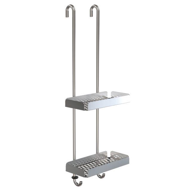 Praktisk sæbehylde fra FROST. Sæbehylden er nem at montere, takket dens kroge, kan den hænges direkte på glasdøren på badeværelset, så du slipper for at bore huller eller andet installation. Sæbehylden har et råt, elegant udseende og er lavet i rustfri stål. Hylden er udstyret med to hylder og to kroge så du har mulighed for at hænge en vaskesvamp, bruseskraber eller andet der er praktisk at have lige ved hånden. Hylden er en del af NOVA2 serien, bestående af tilbehør til badeværelse, garderobe og køkken. Det er en fleksibel serie som kan kombineres, mixes og matches lige efter behov. Både indenbyrdes men også på tværs med FROSTs øvrige serier.