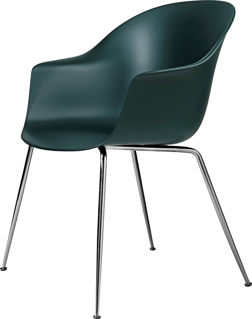 GUBI Bat Dining Chair Conic Base - Chrome base/Dark Green Den elegante Bat spisestuestol er designet af designduoen GamFratesi i tråd med GUBIs moderne nordis Se mere ...