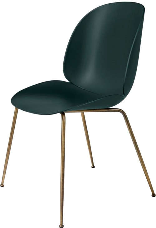 GUBI Beetle Dining Chair Conic Base - Antique Brass Base / Dark Green Shell
