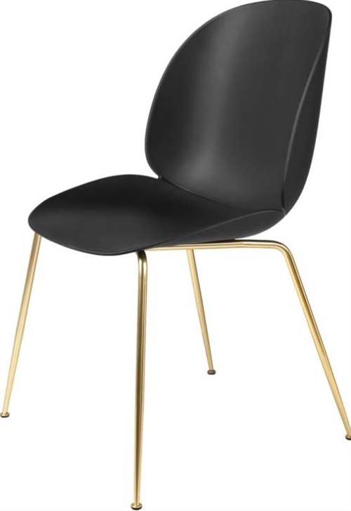 GUBI Beetle Dining Chair Conic Base - Brass Base / Black Shell