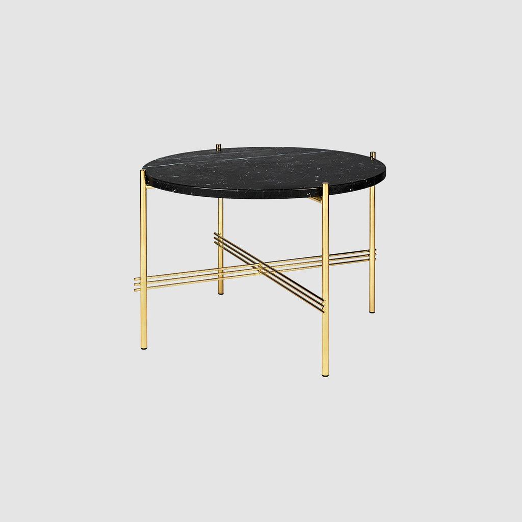 GUBI TS Coffee Table Ø: 55 cm brass base - Marble Black top