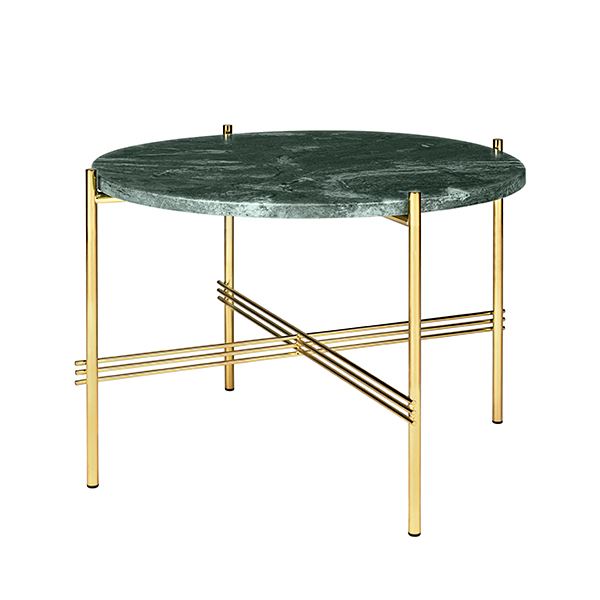 GUBI TS Coffee Table Ø: 55 cm brass base - Marble Green top