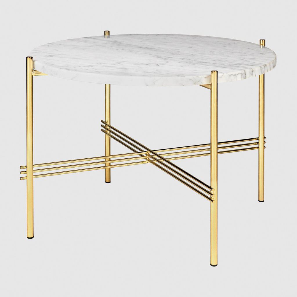 GUBI TS Coffee Table Ø: 55 cm brass base - Marble White top