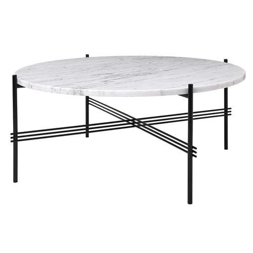 GUBI TS Coffee Table Ø:80 cm black base - White Carrara Marple top