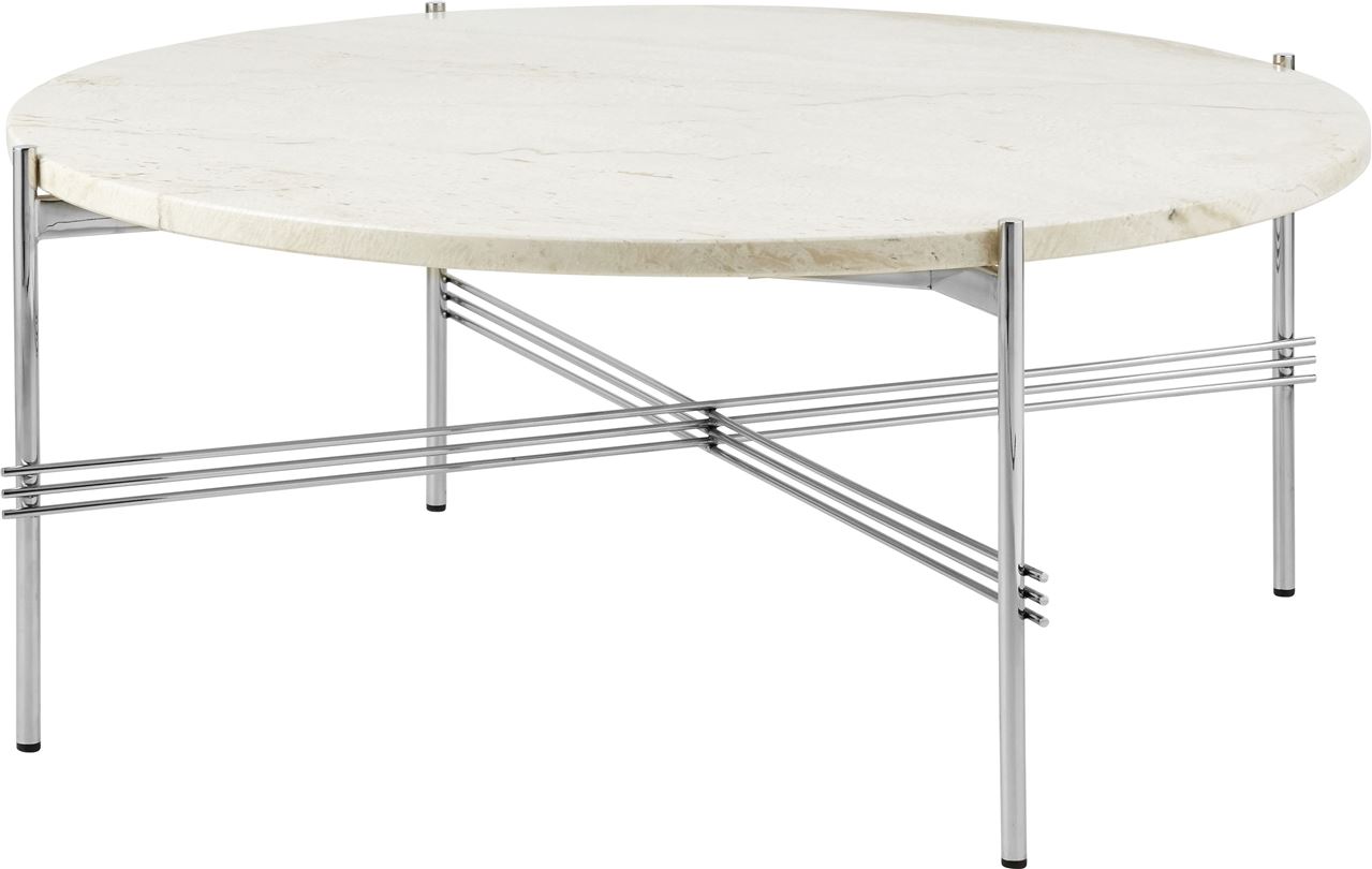 GUBI TS Coffee Table Ø: 80 cm - Polished Steel/Neutral White Travertine