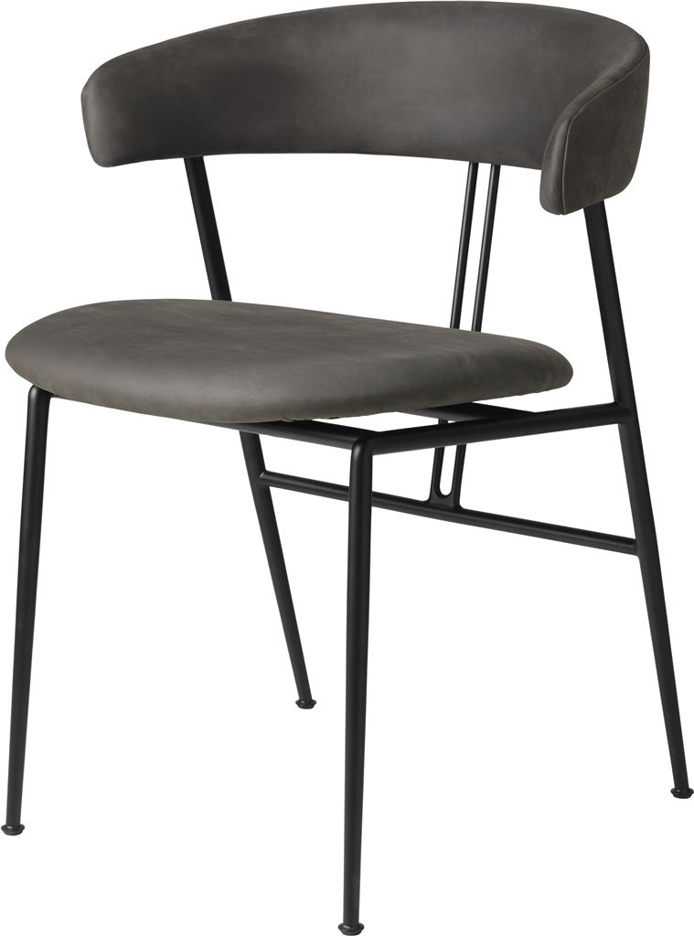 GUBI Violin Dining Chair Fully Upholstered Dunes Leather SH: 45 cm - Black Matt / Grey