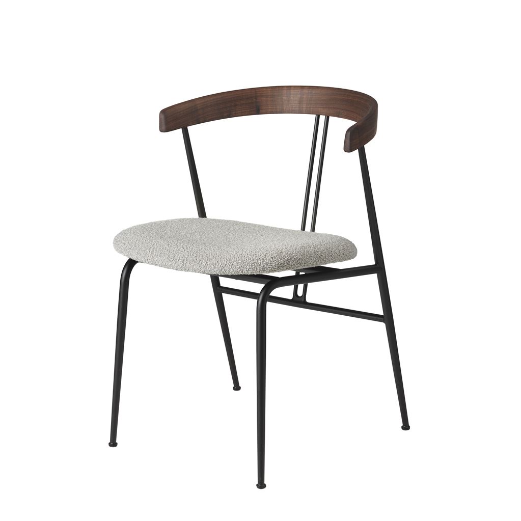 GUBI Violin Dining Chair Upholstered Seat Bouclé SH: 45 cm - Oiled American Walnut / 004