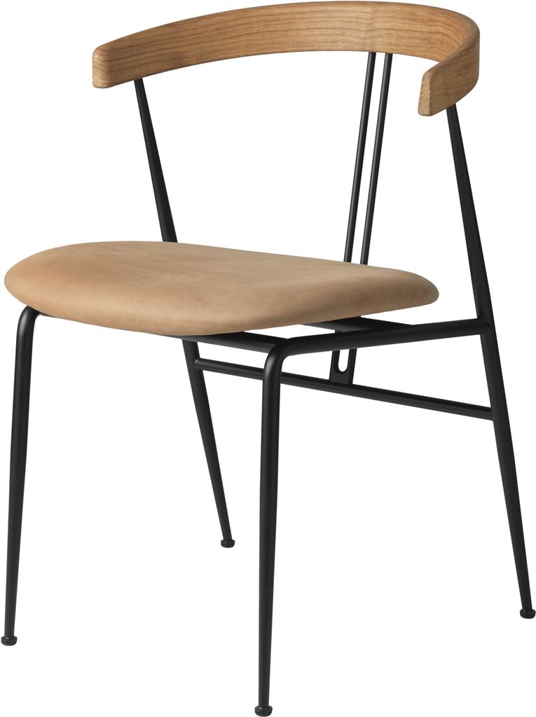 GUBI Violin Dining Chair Upholstered Seat Dunes Leather SH: 45 cm - Oiled Oak / Camel