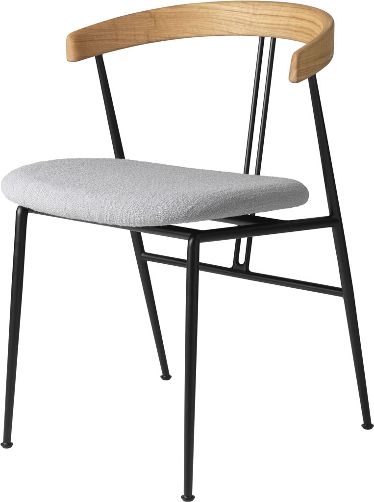 GUBI Violin Dining Chair Upholstered Seat New Wool SH: 45 cm - Oiled Oak / Grey