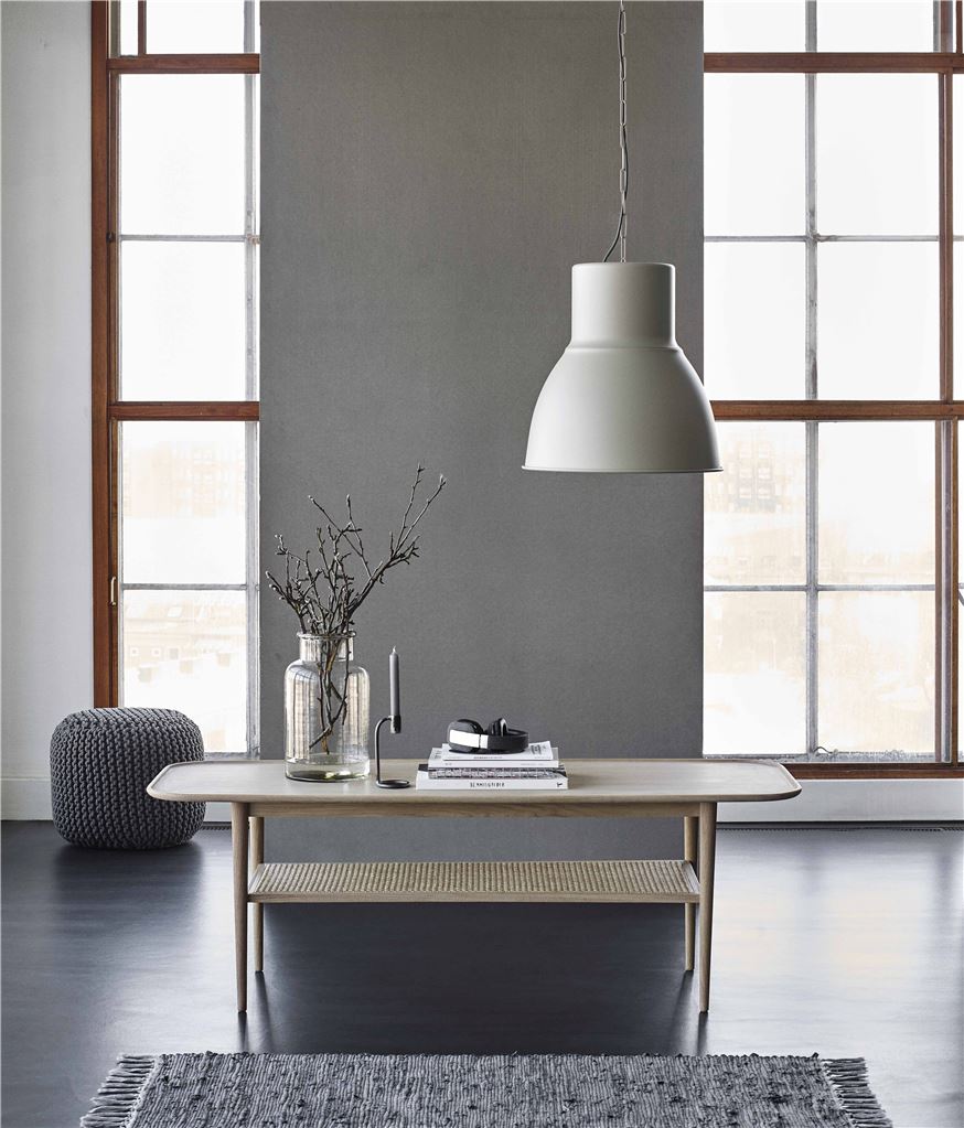 Smukt og utraditionelt sofabord fra Haslev. Sofabordet har en profileret kant på bordpladen samt en rattan hylde i lys fransk flet, der er med til at give bord Se mere ...