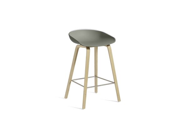 HAY AAS 32 Barstol Low - Soaped Oak Veneer/Dusty Green/Footrest Stainless Steel