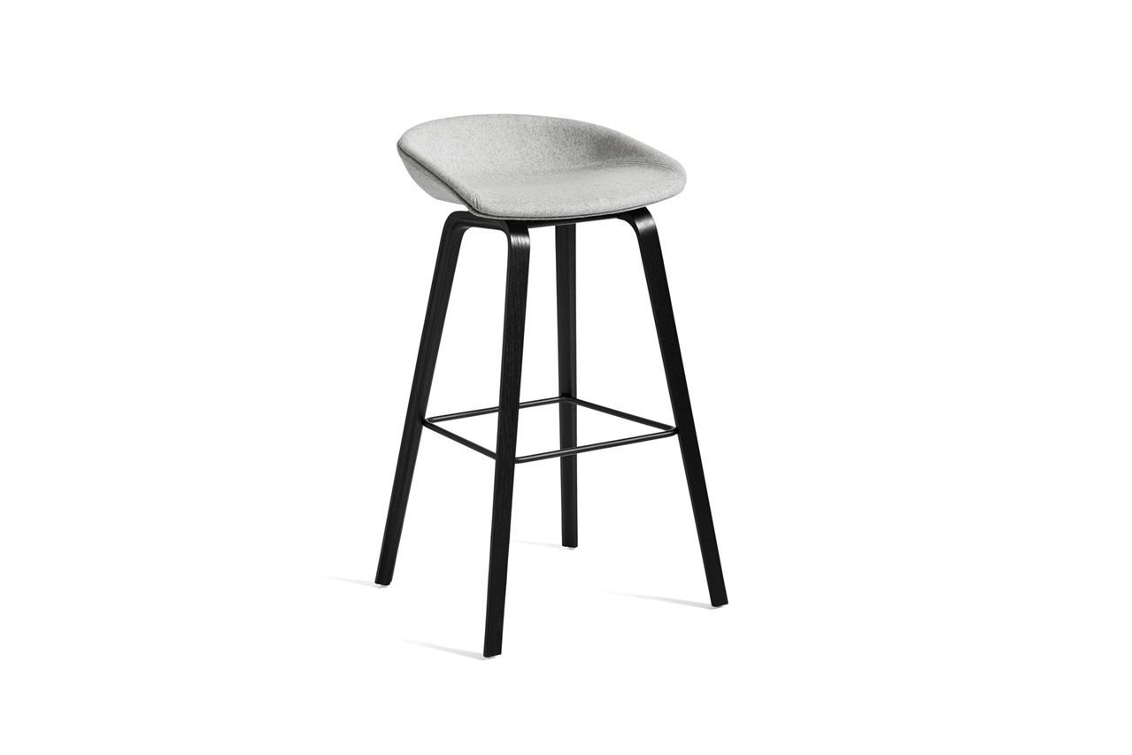HAY AAS33 Barstol High SH: 75 - Black Lacquered Oak / Divina Melange 120/ Steel Footrest