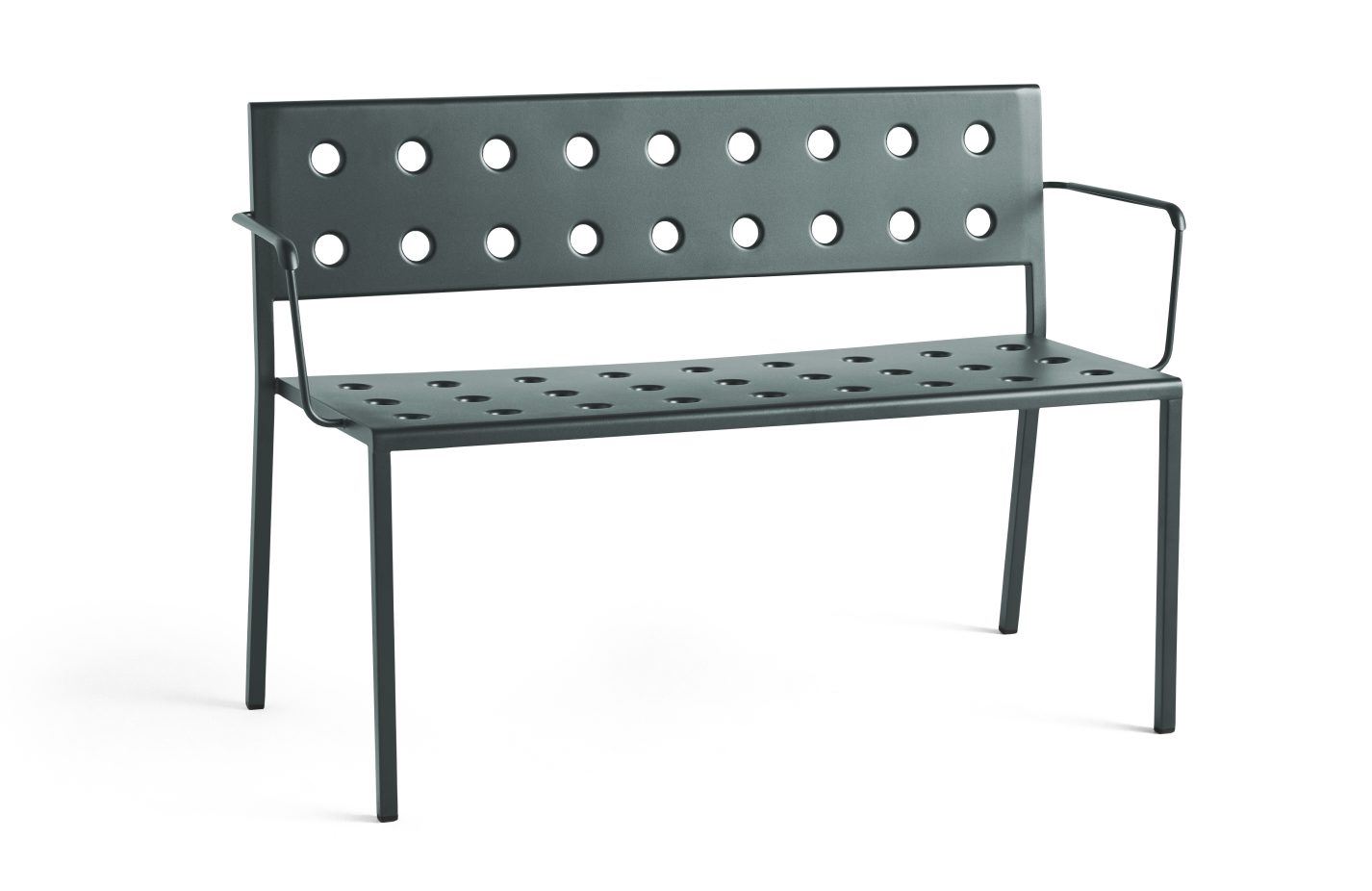 HAY Balcony Dining Bench er designet af Ronan og Erwan Bouroullec og er en funktionel bænk til udendørs brug. Balcony serien forener et rektangulært design med bløde, imødekommende former og slanke ben. Hullerne i designet styrker konstruktionen samtidigt med, at den skaber et særligt udtryk og armlænet sørger for ekstra siddekomfort. Balcony Dining Bench er lavet i pulverlakeret stål med en udendørs primer for optimal holdbarhed. Bænken kommer i forskellige farver, hvilket gør den egnet til en bred række indretninger, og kan bruges til indretning af alt fra udendørs områder til altaner.