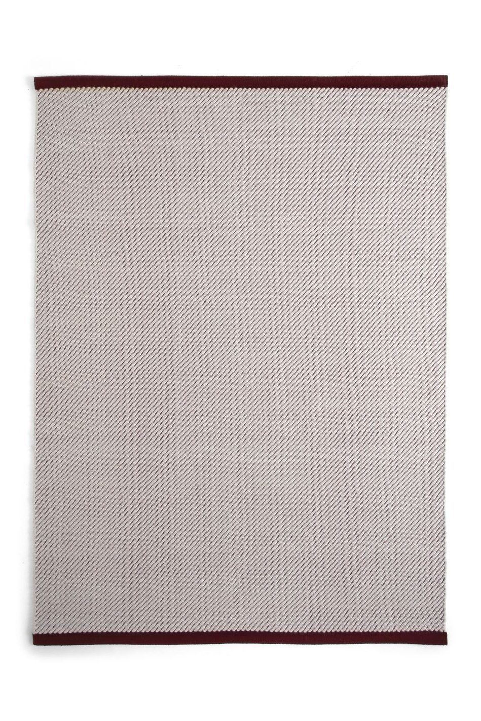 Skab en rød tråd i indretningen med det smukke Bias Rug Tint fra HAY. Dette tæppe er vævet med en visuelt tiltalende tofarvet effekt, hvor en cremefarvet skudtråd væves ind i en farvet trend. Det subtile diagonale mønster er elegant indrammet af solide farvebånd i begge ender, hvilket skaber et alsidigt tæppe, der kan løfte ethvert rum.
