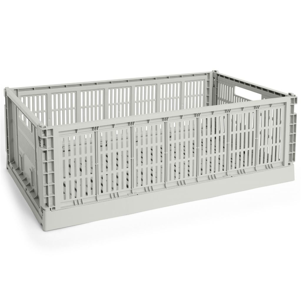 Colour Crates er danske HAYs populære multifunktionelle opbevaringskasser. Kasserne er lavet af 100% genanvendt plast og kan stables på tværs af størrelser og farver, hvilket giver dig muligheden for et personligt touch i din indretning. Opbevaringsløsningen er ideel på alt fra bogreolen til børneværelset, da den kan bruges til opbevaring af både accessories i entréen og garderoben, cremer og makeup på badeværelset, krydderier i køkkenet eller organisering ved puslebordet. Er kasserne ikke i brug kan de foldes sammen.