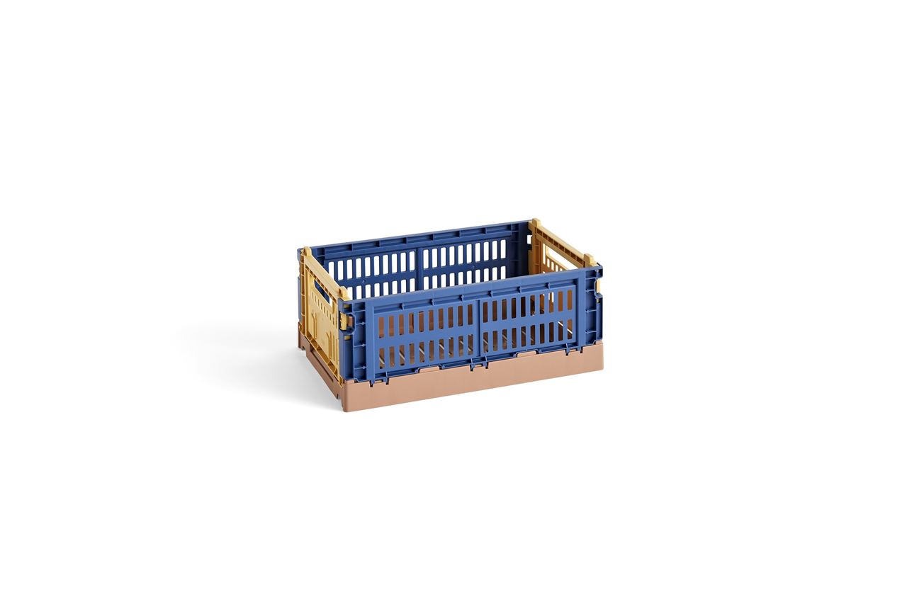 Colour Crates Mix er danske HAYs nye genanvendte version af de populære multifunktionelle opbevaringskasser. Kasserne er lavet af 100% genanvendt plast og kan stables på tværs af størrelser og farver, hvilket giver dig muligheden for et personligt touch i din indretning. Opbevaringsløsningen er ideel på alt fra bogreolen til børneværelset, da den kan bruges til opbevaring af både accessories i entréen og garderoben, cremer og makeup på badeværelset, krydderier i køkkenet eller organisering ved puslebordet. Er kasserne ikke i brug kan de foldes sammen.