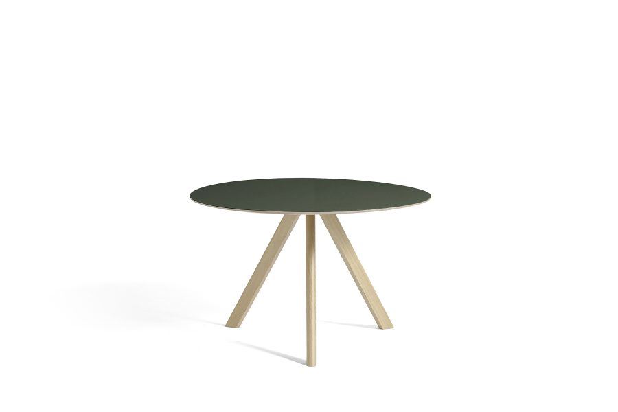 HAY CPH 20 Round Table Ø: 120 cm - Lacquered Solid Oak/Green Linoleum