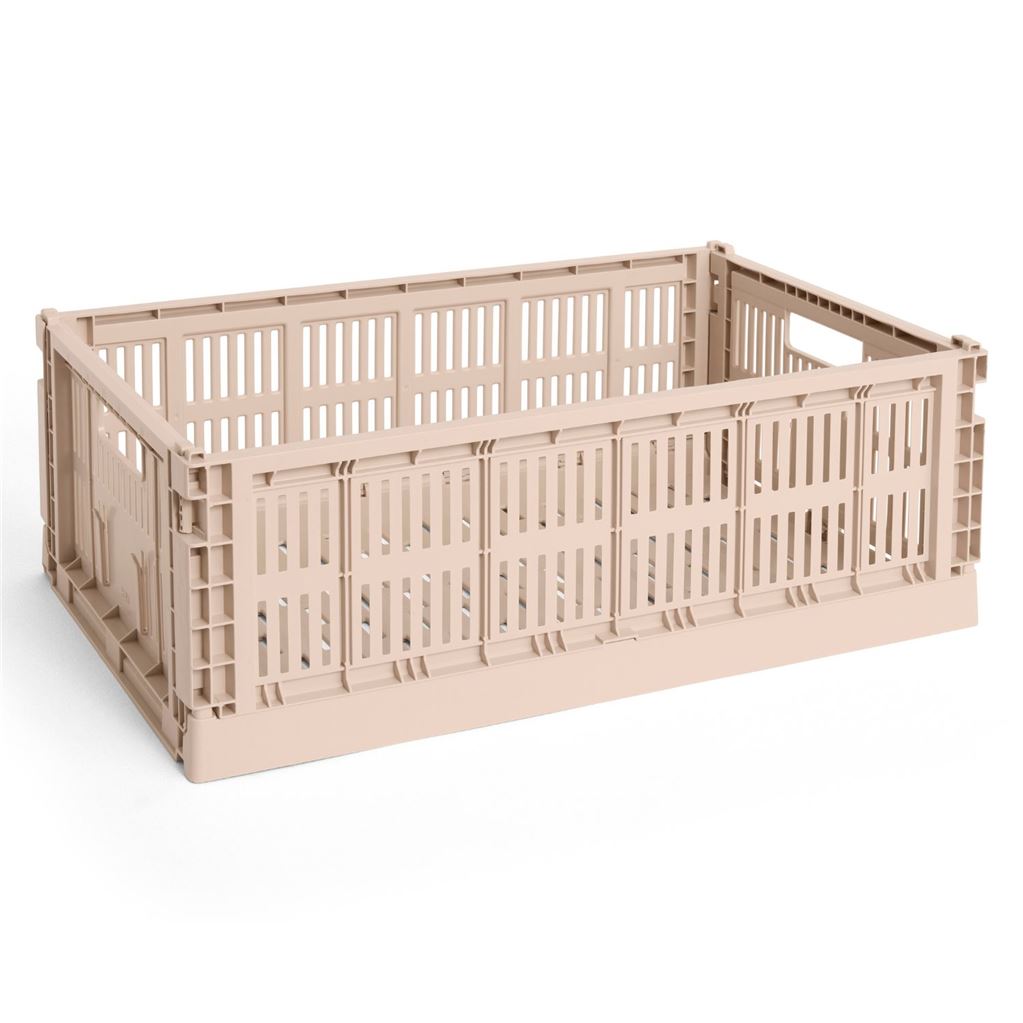 Colour Crates er danske HAYs populære multifunktionelle opbevaringskasser. Kasserne er lavet af 100% genanvendt plast og kan stables på tværs af størrelser og farver, hvilket giver dig muligheden for et personligt touch i din indretning. Opbevaringsløsningen er ideel på alt fra bogreolen til børneværelset, da den kan bruges til opbevaring af både accessories i entréen og garderoben, cremer og makeup på badeværelset, krydderier i køkkenet eller organisering ved puslebordet. Er kasserne ikke i brug kan de foldes sammen.