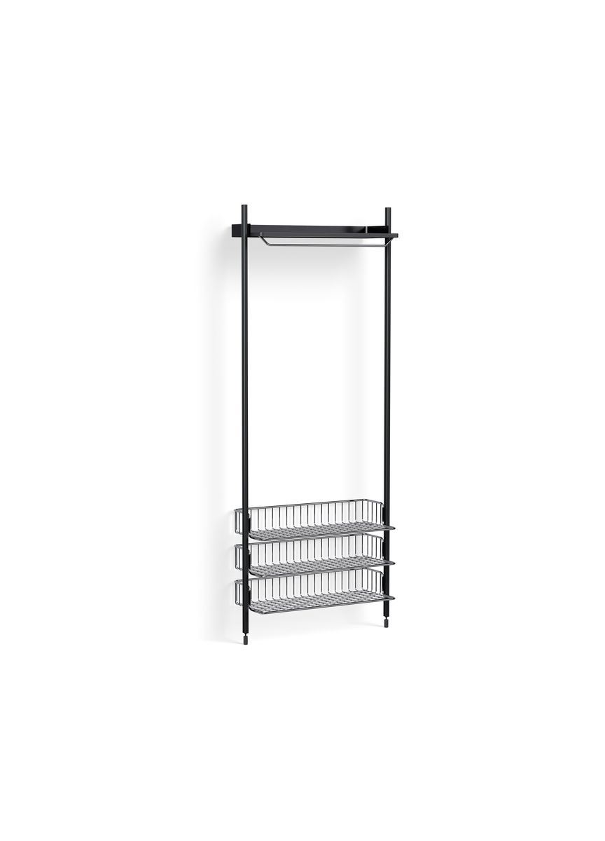 HAY Pier System 1021 1 Column 82x209 cm - PS Black Steel/Black Anodised Profiles/Chromed Wire Shelf