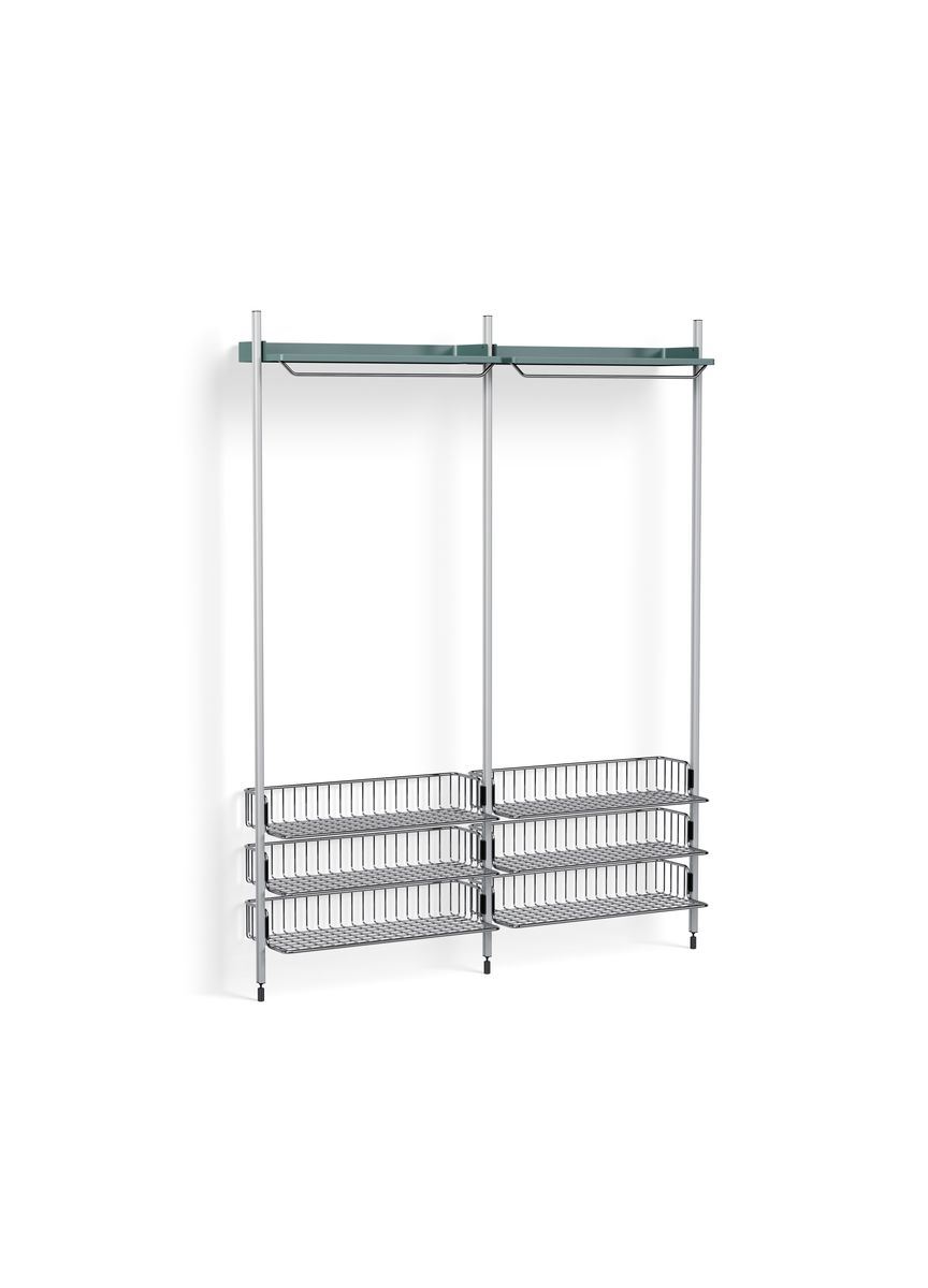 HAY Pier System 1022 2 Columns 162x209 cm - PS Blue Steel/Clear Anodised Profiles/Chromed Wire Shelf