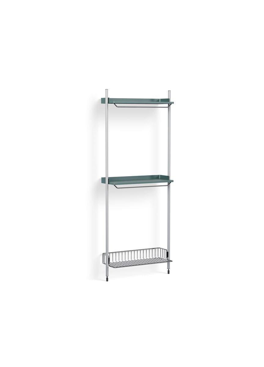 HAY Pier System 1031 1 Column 82x209 cm - PS Blue Steel/Clear Anodised Profiles/Chromed Wire Shelf