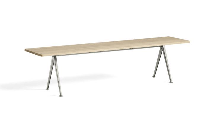 HAY Pyramid 12 Bench L: 190 cm - Beige Steel Base/Matt Lacquered Oak