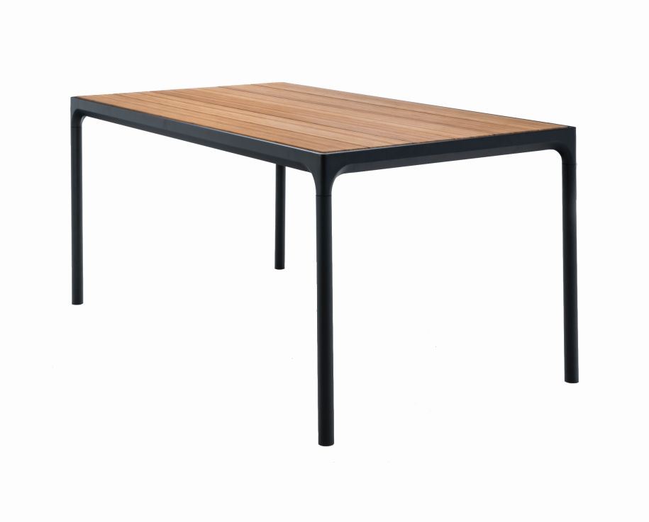 Lækkert havebord fra HOUE. Havebordet har en bordplade, som er lavet af bambus. Den naturlige overflade er neutral og komplimenterer derfor andre farver rigtig flot. Det sorte stel af aluminium, giver bordet et super fint udtryk. Det moderne og funktionelle bord er tidsløst og kan anvendes i mange år. Mix og match det med den havestol, der passer bedst ind i din stil. Serien Four fra Houe laver også havebordet i 3 andre størrelser, udforsk brandet her på vores hjemmeside eller kontakt vores dygtige sælgere for den rette rådgivning. Serien Four har fået sit navn fordi at bordet har 4 ben, uanset hvilket størrelse du køber.