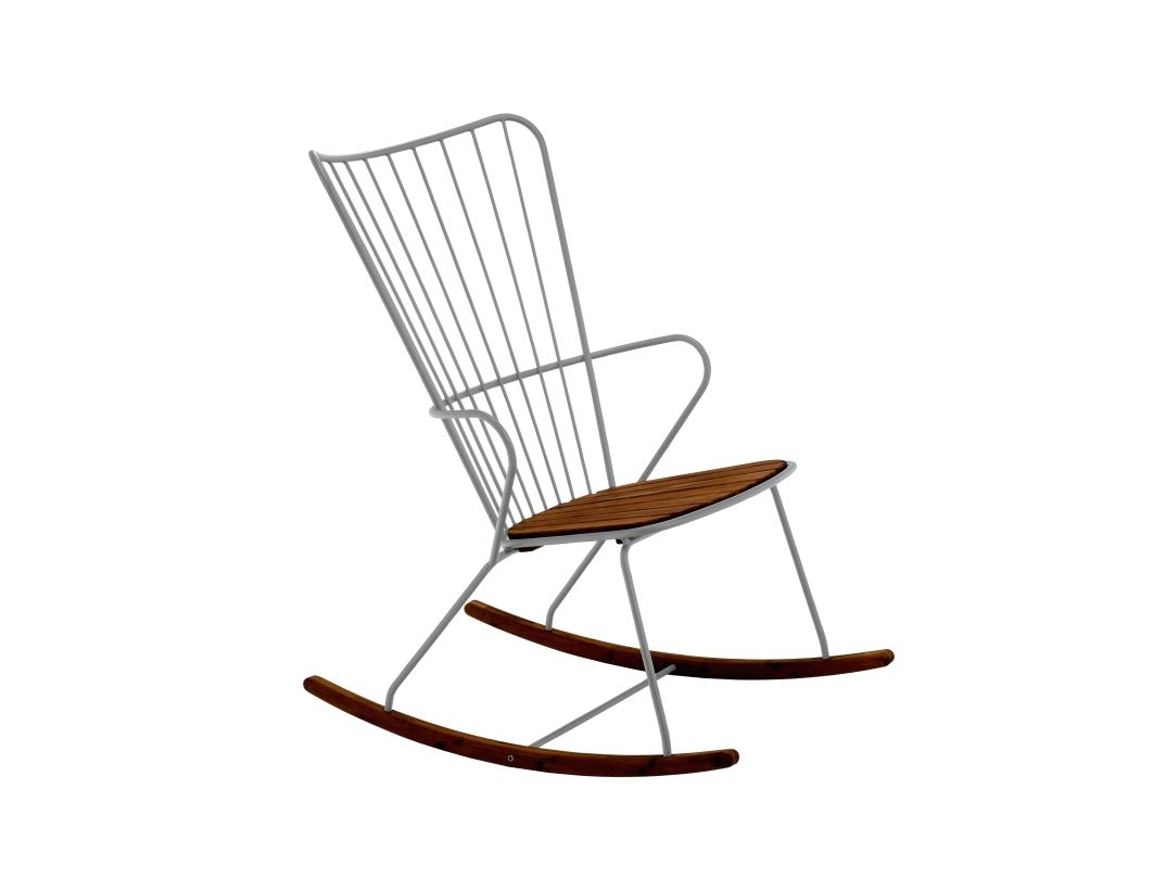 Smuk gyngestol fra HOUE. Stolen er designet af danske Henrik Pedersen og er fremstillet i pulverlakeret metal og bambuslameller. Paon har et let og skandinavisk udtryk, dog med et strejf af fransk romantik. Af en metalstol at være, så har Paon en utrolig siddekomfort, som man ikke forventer. Den afrundede ryg er nemlig med til at omfavne dig med tryghed og komfort, der resulterer i total afslapning på terrassen.