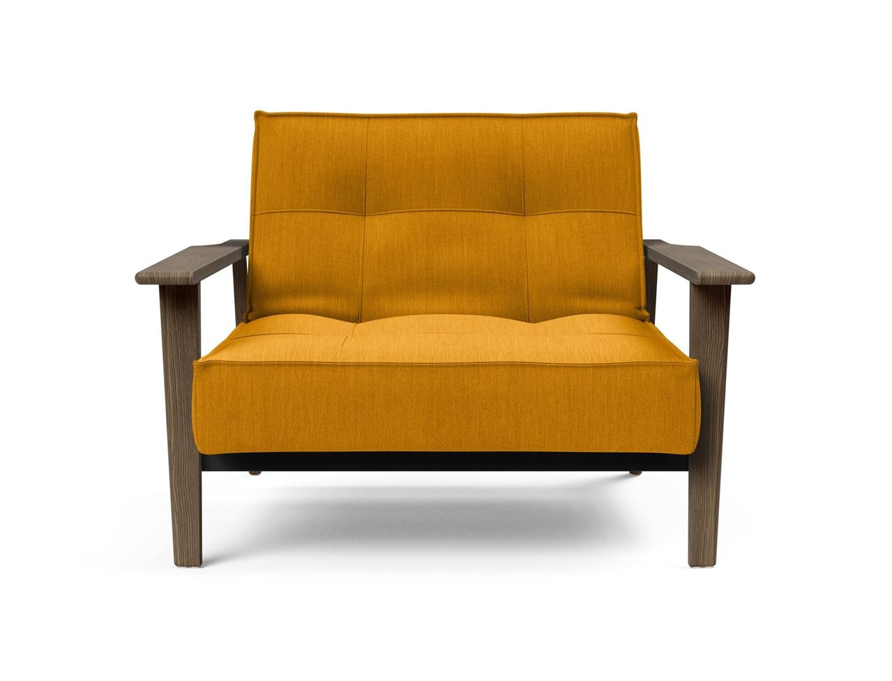 Skøn stol fra Innovation Living, designet af Per Weiss, Oliver & Lukas WeissKrogh. Med denne stol får du et multifunktionelt design, med et varmt nordisk design. Det røget eg stolens armlæn og ben er udformet af, tilføjer et mere varmt ydre, derudover tilføres der også et touch af dansk design til dit hjem og din indretning. Stolen kan bruges som et ekstra modul til din Splitback Frej sovesofa, hvis ryggen på stolen ligges helt ned, kan den tilføjes som chaiselong. Du kan også placere to stole i forlængelse af hinanden og skabe en soveplads for en enkelt person. Stolen tilbyder derfor både en god siddeplads, samt soveplads til overnattende gæster. Stolen kan naturligvis også benyttes alene, både med ryggen i oprejst position, eller med den tilbagelænet position der giver en mere afslappet komfort. Med denne kollektion skaber du et hav af muligheder til din stue.