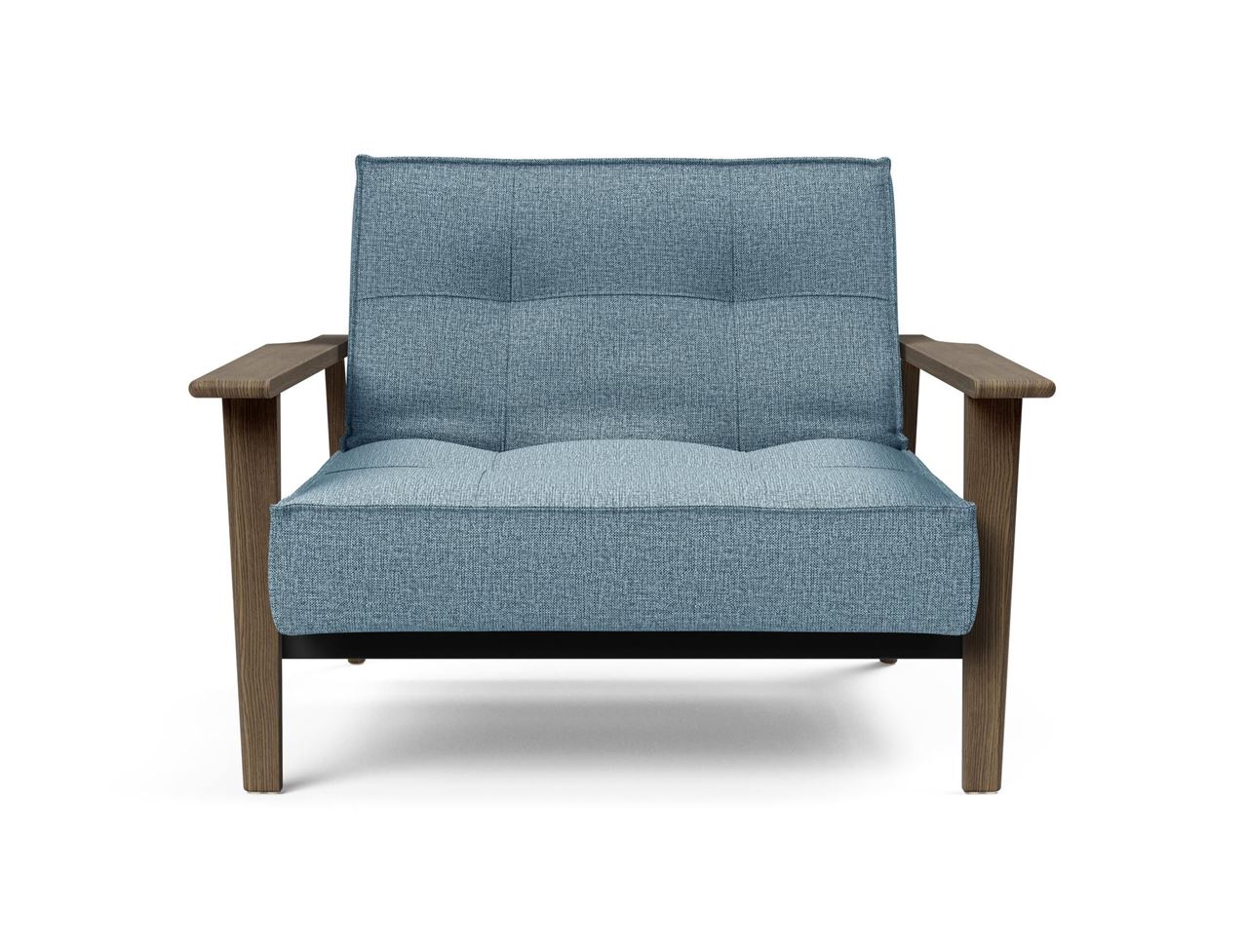 Skøn stol fra Innovation Living, designet af Per Weiss, Oliver & Lukas WeissKrogh. Med denne stol får du et multifunktionelt design, med et varmt nordisk design. Det røget eg stolens armlæn og ben er udformet af, tilføjer et mere varmt ydre, derudover tilføres der også et touch af dansk design til dit hjem og din indretning. Stolen kan bruges som et ekstra modul til din Splitback Frej sovesofa, hvis ryggen på stolen ligges helt ned, kan den tilføjes som chaiselong. Du kan også placere to stole i forlængelse af hinanden og skabe en soveplads for en enkelt person. Stolen tilbyder derfor både en god siddeplads, samt soveplads til overnattende gæster. Stolen kan naturligvis også benyttes alene, både med ryggen i oprejst position, eller med den tilbagelænet position der giver en mere afslappet komfort. Med denne kollektion skaber du et hav af muligheder til din stue.
