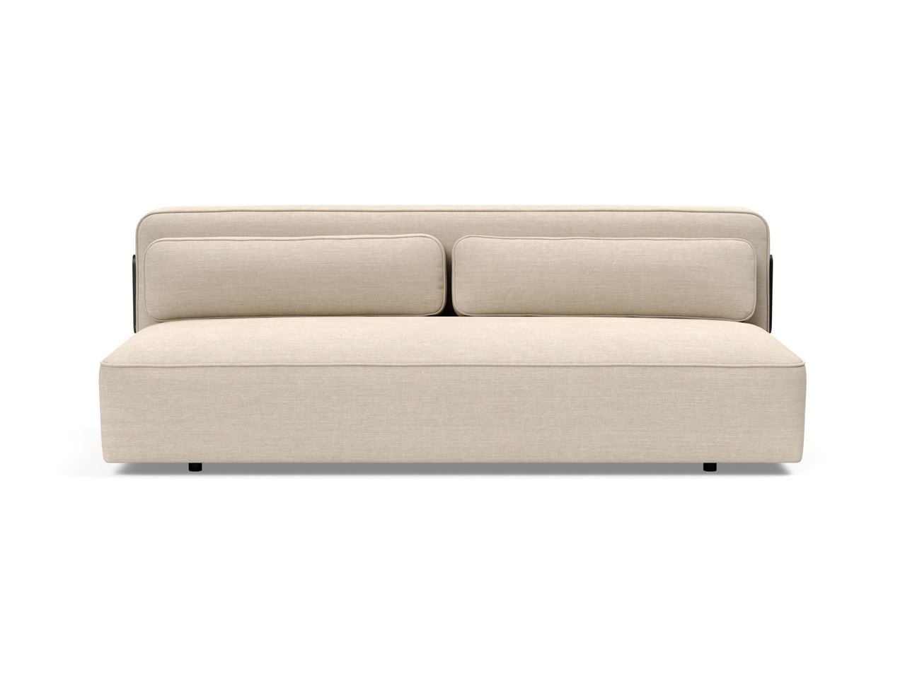 Skøn sovesofa fra Innovation Living, designet af Emil Højfeldt og Per Weiss. Sovesofaen er komfortabel og multifunktionel, med et minimalistisk og nutidigt, moderne design. Ryglænet er polstret på begge sider, du har derfor ryglæn på den ene side og madras på den anden side. Sovesofaen kan sagtens bruges uden rygpuderne,dette er blot et spørgsmål om komfortoptimering. På siden af sovesofaen sidder et lille elegant sortlakeret aluminiums ben, som kommer i brug når sofaen bliver lavet om til seng. Derudover kan betrækket tages af og vaskes.
