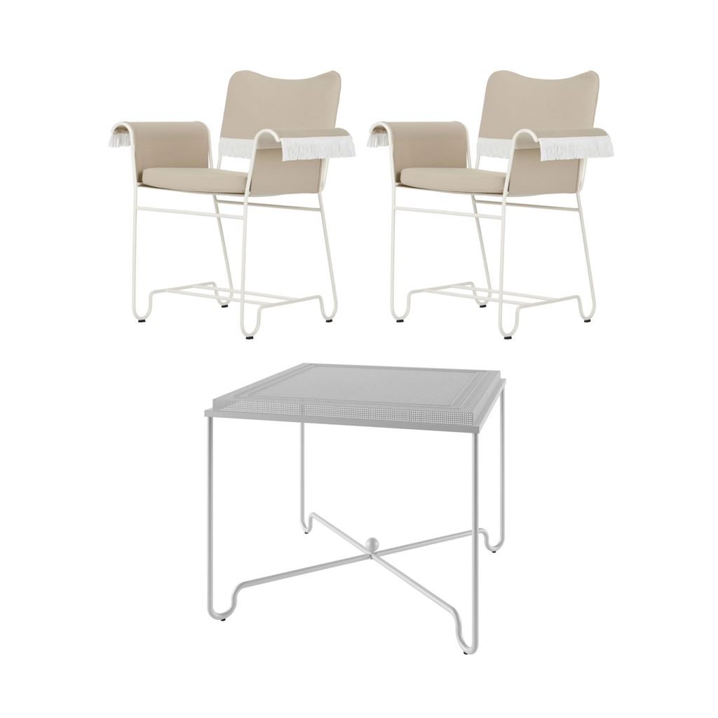 GUBI Tropique Dining Table 90x90 + Tropique Dining Chairs W. Fringes Havemøbelsæt - White Steel/Black Limonta 12