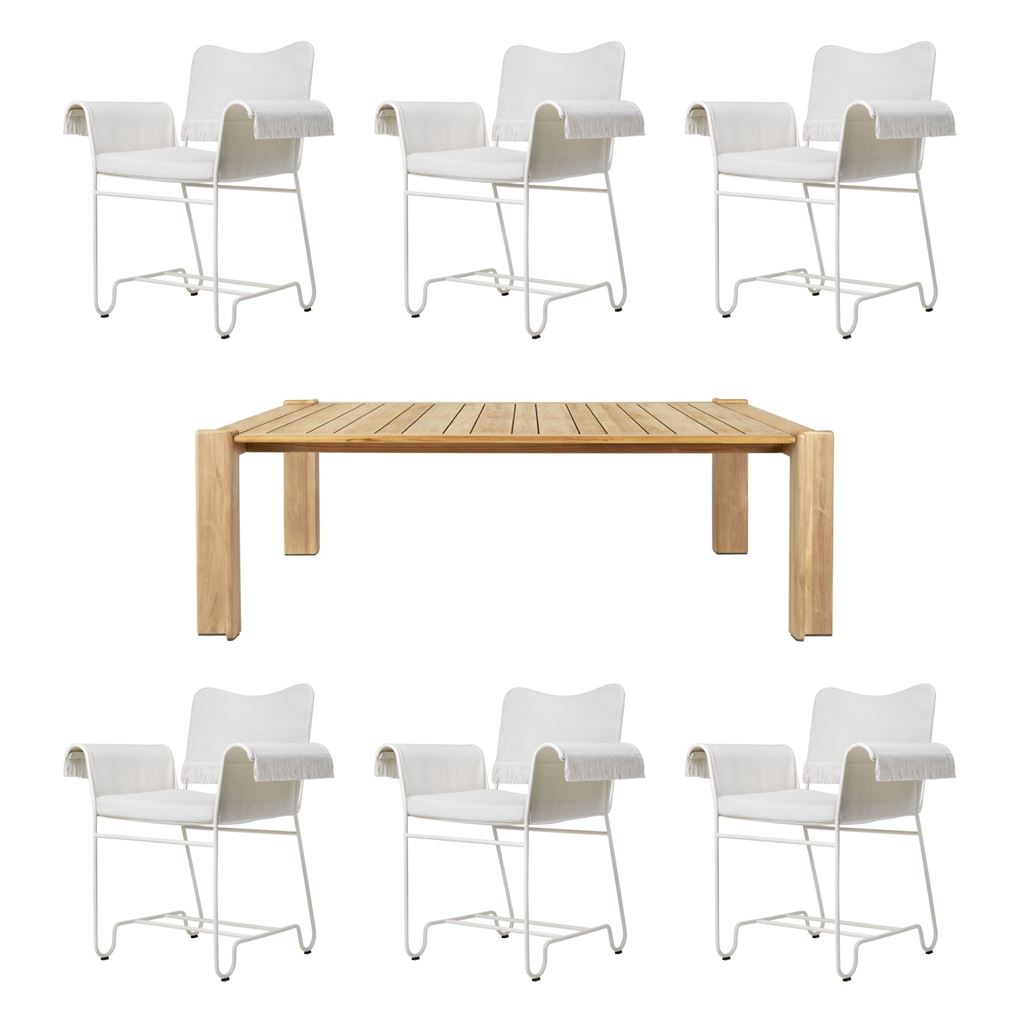 GUBI Outdoor Atmosfera Dining Table 105x209 + Tropique Dining Chairs W. Fringes Havemøbelsæt - Teak/Limonta 06