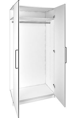 Stilrent garderobeskab fra Kaagaard. Dette garderobeskab med 2 låger med kromgreb, 1 bøjlestang og 1 fast hylde. Det vil sige du altid har plads til de ting Se mere ...