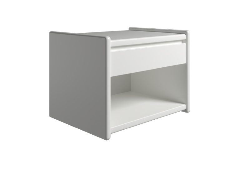 Sengebord fra danske Kaagaard. 215037 sengebordet har et enkelt design med elegante afrundede hjørner. Bordet består af en skuffe og et åbent rum. Sengebordet kommer i hvid og har et minimalistisk design, som med fordel kan tilføjes til eksisterende indretninger, og som passer ideelt i de skandinaviske indretninger.