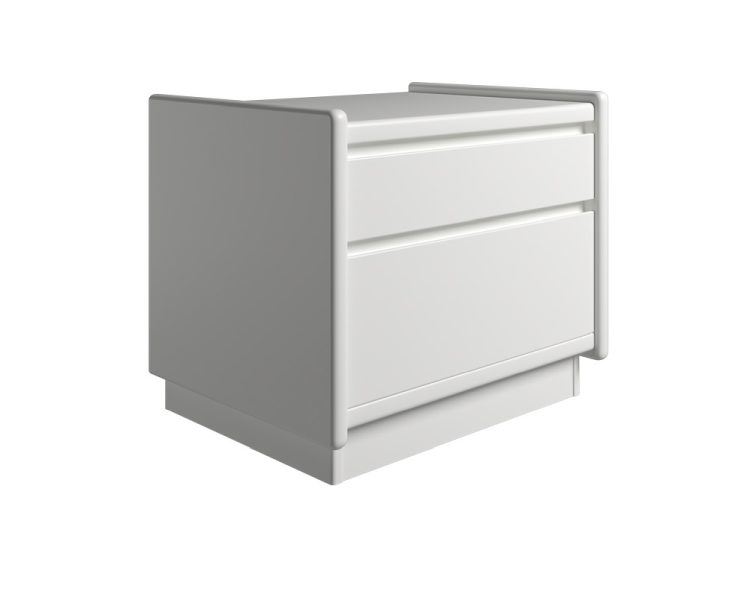 Sengebord fra danske Kaagaard. 225037 sengebordet har et enkelt design med elegante afrundede hjørner. Bordet består af en lav skuffe og en høj skuffe. Sengebordet kommer i en hvid farve og har et minimalistisk design, som med fordel kan tilføjes til eksisterende indretninger, og som passer ideelt i de skandinaviske indretninger.