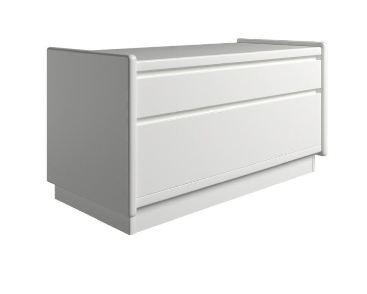 Sengebord fra danske Kaagaard. 228037 sengebordet har et enkelt design med elegante afrundede hjørner. Bordet består af en lav skuffe og en høj skuffe. Bordet kommer i en hvid farve og har et minimalistisk design, som med fordel kan tilføjes til eksisterende indretninger, og som passer ideelt i de skandinaviske indretninger.